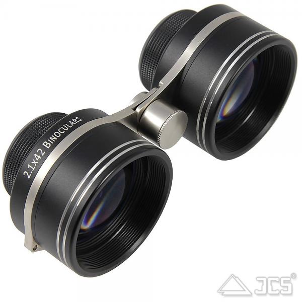 Galileische Optik: 2,1-fache Vergrößerung und 42 mm Öffnung