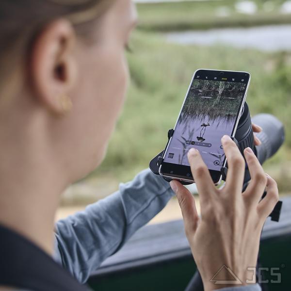 - Maximale Flexibilität: Das clevere Klemmsystem blockiert weder die seitlichen Bedientasten Ihres Smartphones noch die Kameralinsen. Sie können das Handy auch mit montiertem Adapter für freie Fotos ohne Spektiv nutzen.