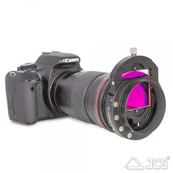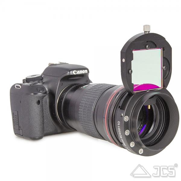 - Adaption an Kamera-Objektive: In Kombination mit den Baader Hyperion DT-Ringen (Step-Ringe) ermöglicht dieser Adapter die Montage des UFC-Systems vor vielen gängigen Kameraobjektiven. Das SP54-Gewinde ist hierbei der Standardanschluss für das Hyperion-Gewindesystem. Dies erlaubt den schnellen Wechsel von Filtern auch bei der Verwendung von DSLR- oder Systemkamera-Objektiven.