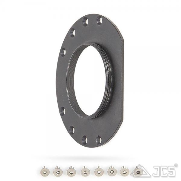 Der Adapter wird direkt auf die kameraseitige Seite der UFC Basis (Filterkammer) montiert. Die dafür notwendige Montageplatte und Schrauben sind im Lieferumfang enthalten, was eine sichere und verwindungssteife Verbindung gewährleistet. Durch das 2" SC-Gewinde lassen sich vielfältige Zubehörteile, Kameras oder weitere Adapterringe, die über ein entsprechendes 2" SC-Innengewinde verfügen, nahtlos in den optischen Weg integrieren.