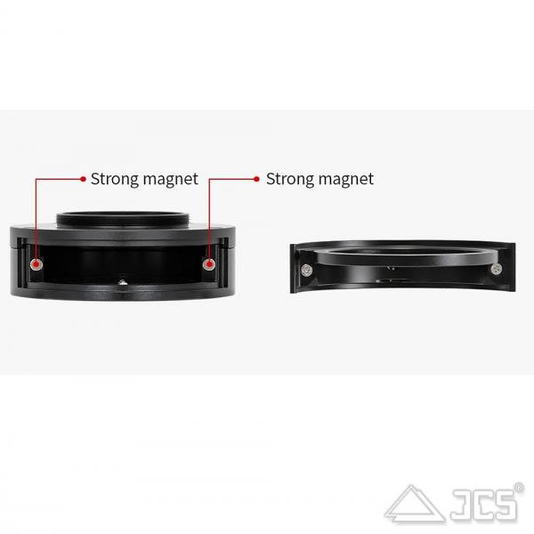 Dank der innovativen magnetischen Fixierung rastet der Filterhalter präzise und wiederholgenau in das Gehäuse ein. Dies garantiert eine perfekte Zentrierung des Filters im Strahlengang. Die offene Bauweise erlaubt ein müheloses Greifen und Austauschen des Halters, selbst bei Dunkelheit oder mit Handschuhen.