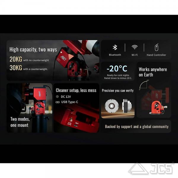 - Flexible Steuerung: Steuern Sie die Montierung ganz nach Ihren Vorlieben über Bluetooth, WLAN (Wi-Fi) oder die mitgelieferte smarte Handsteuerung.