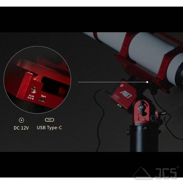 Viele Teleskop-Setups enden in einem Gewirr aus Kabeln und Adaptern. Die AM7 sorgt für Ordnung: Mit einem Gewicht von nur 6,75 kg ist sie leicht zu transportieren und blitzschnell aufgebaut. Die integrierte Prismenklemme verfügt über einen USB-C-Anschluss sowie DC-Stromausgänge. Führen Sie Strom und Daten elegant durch die Montierung, anstatt sie außen herum zu wickeln. Das Ergebnis: Ein aufgeräumtes System, das in der Dunkelheit sicher funktioniert.