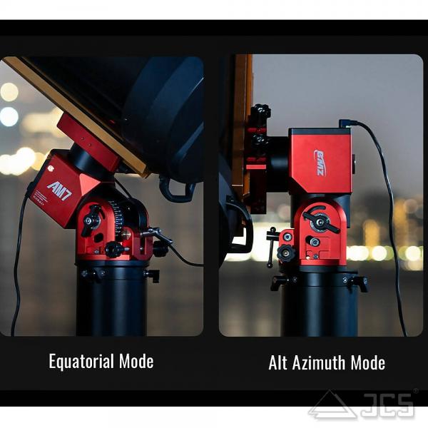 - Ein System, zwei Modi: Parallaktischer Modus (EQ) für präzises Tracking und Astrofotografie sowie azimutaler Modus (Alt-Az) für die visuelle Beobachtung.