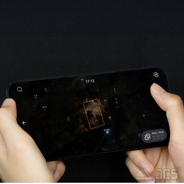 Die im Lieferumfang enthaltene Joystick-Handsteuerung ist komfortabel und intuitiv. Sie fungiert gleichzeitig als WLAN-Hotspot und Verbindungs-Hub. Über die Sky Atlas App (für iOS und Android) erhalten Sie eine interaktive Sternkarte, einfache Objektsuche ("Tonight's Best") und präzises GoTo.